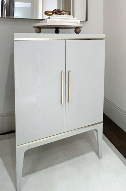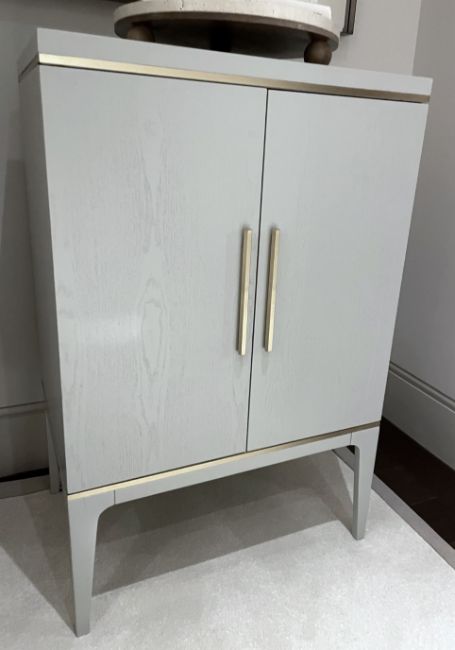 Item description: The Pale Grey Cabinet by RV Astley is a perfect blend of understated elegance and timeless design, making it a refined addition to any interior. Finished in a soft, pale grey hue, this sophisticated piece is beautifully accented with a warm antique brass trim, adding a touch of vintage charm while maintaining a contemporary feel.