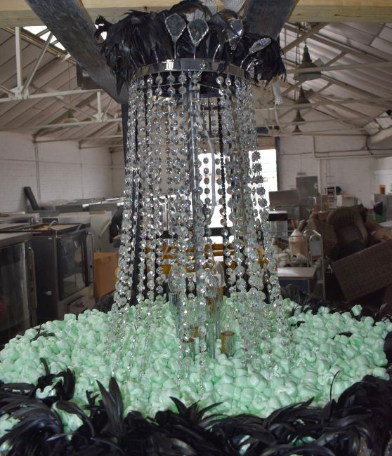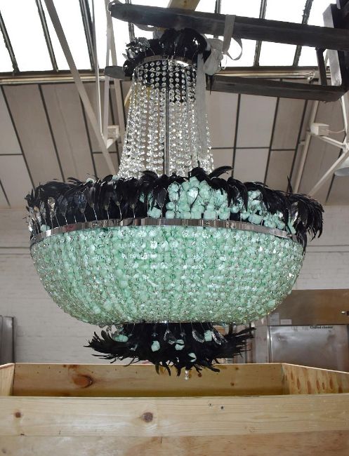 1 x Impressive 1.3-Metre Tall Chandelier Adorned With Crystal Glass Droplets and Genuine Black Feather Decoration - Ref: CNT401/GIT - CL845 - NO VAT ON THE HAMMER - Location: Altrincham WA14