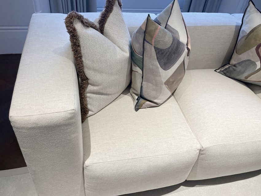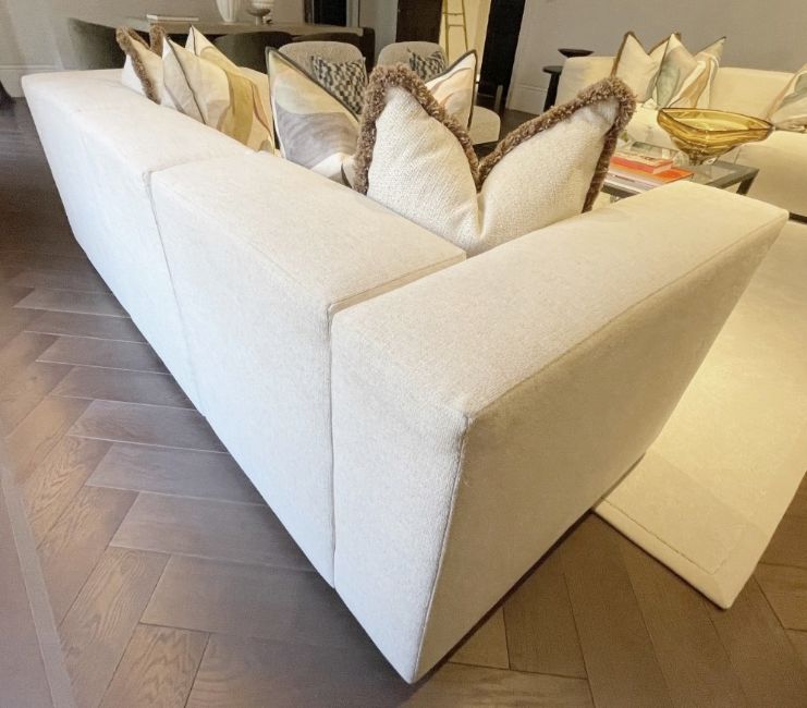 1 x Striking 2.2-Metre Modular Statement Sofa in a Neutral Woven Upholstery with a Modern Off-White/Stone Tone - Ref: OWO005B / LNG+DIN - CL1079 - NO VAT ON THE HAMMER - Location: Altrincham WA14