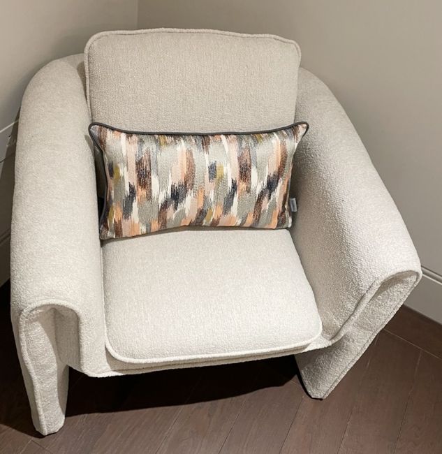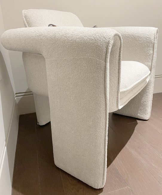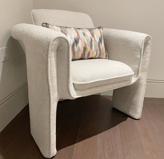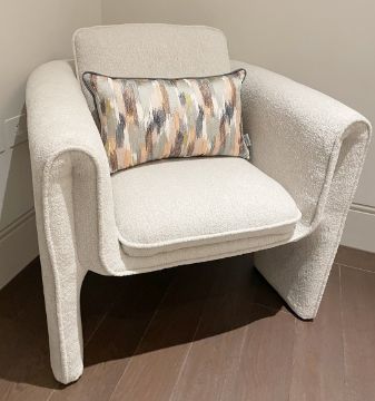 Item Description: Characterised by its unique form, the Eichholtz Toto Chair is a striking piece that will sit effortlessly in a contemporary living space. Its eye-catching design provides a comfortable place to relax. The Toto Chair has been skilfully crafted and upholstered in a cream bouclé fabric. The chair comes with a matching scatter cushion and provides a luxurious place to sit in any modern living room or stylish bedroom.
