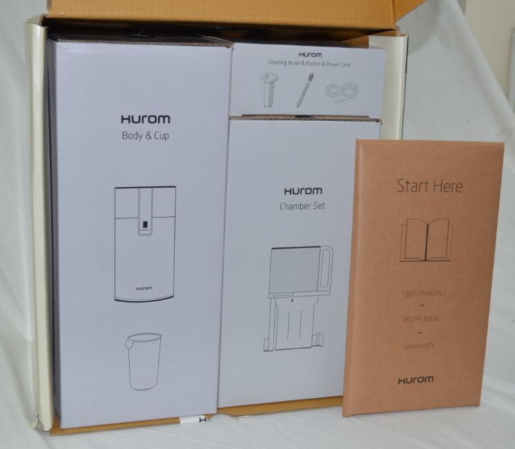 Includes upper and lower auger, pusher, juice container, cleaning brush and recipe book