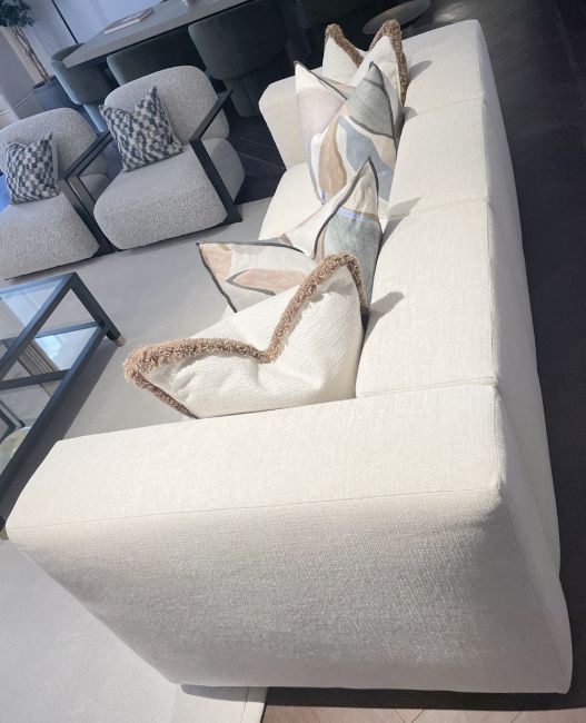 1 x Striking 2.2-Metre Modular Statement Sofa in a Neutral Woven Upholstery with a Modern Off-White/Stone Tone - Ref: OWO005A / LNG+DIN - CL1079 - NO VAT ON THE HAMMER - Location: Altrincham WA14