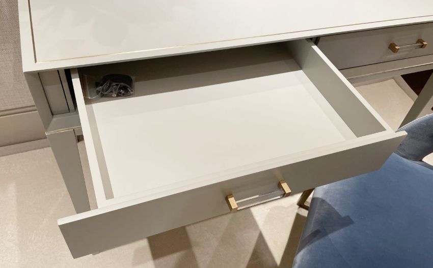 The 2 drawers, adds useful storage space, and the contrasting glass handles on the drawers add elegance to the whole console table