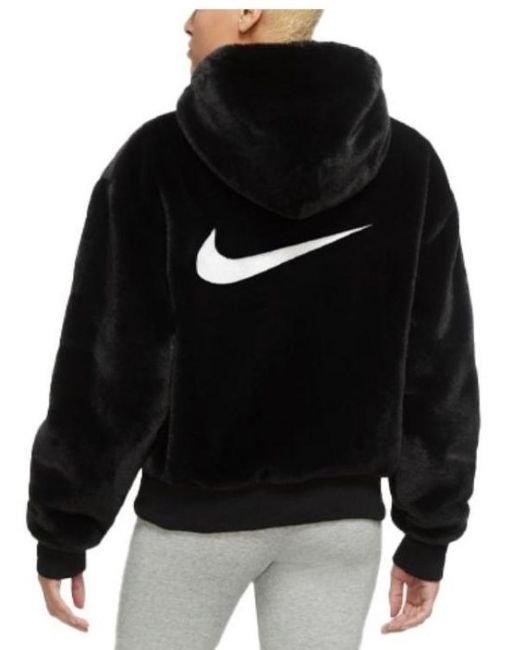 1 x Nike Essentials Womens Faux Fur Jacket in Black - Size: Large - New with Tags - RRP £199 - Ref: BGTMK104 - CL1080 - Location: Altrincham WA14