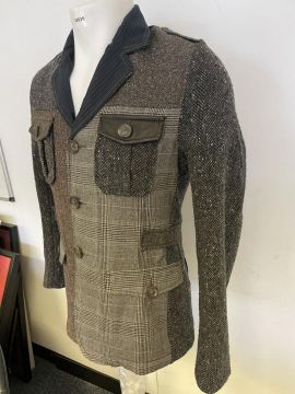 1 x DESIGUAL Men's Patchwork Herringbone Wool Rich 3-Button Jacket Blazer - Size: IT/EU50 *RARE* Ref: LB535 - CL1020 - NO VAT ON THE HAMMER - Location: Altrincham WA14