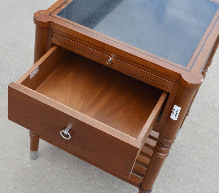 1 x CHANNELS Classically Styled Designer Solid Wood End Table with Pull-Out Tray, 1-Drawer Storage and Stone Inlaid Top - Recently Removed From A Luxury 5-Star Hotel - Ref: NLG124 - CL886 - Location: Altrincham WA14