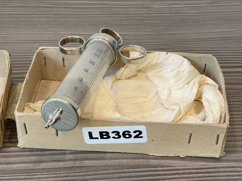 1 x Vintage Steel & Glass 3-Ring Medical Syringe in it's Original Box - Ref: LB362 - CL1020 - NO VAT ON THE HAMMER - Location: Altrincham WA14
