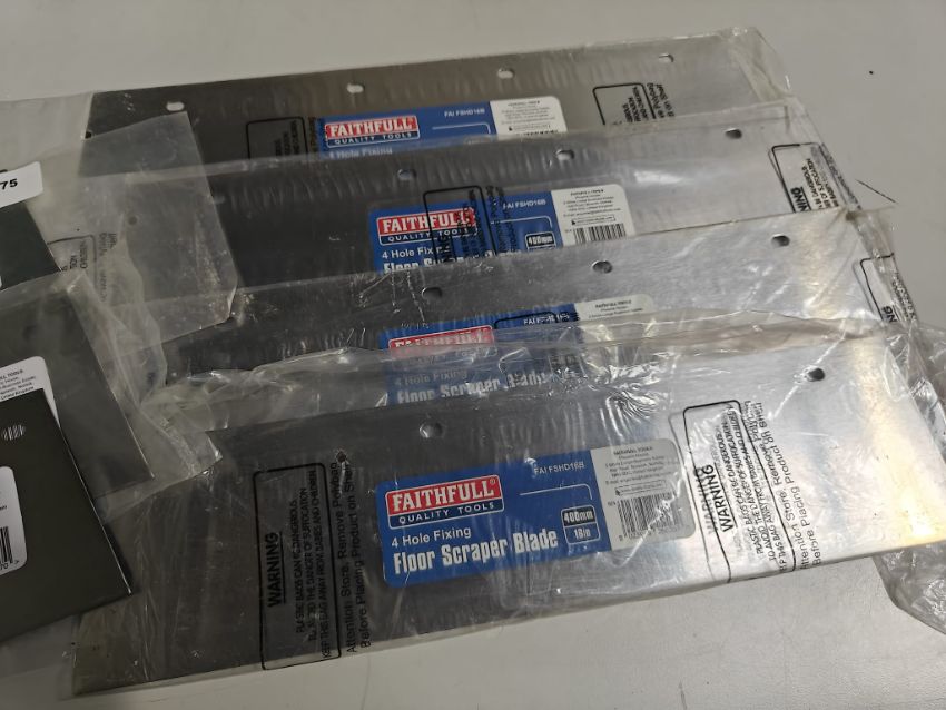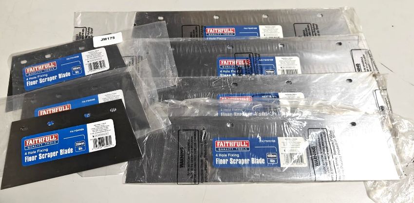 7 x Faithful Floor Scraper Bladers - 4 Hole Fixing - Two Sizes Included - New Stock - CL1076 - Ref: JM175 - Location: Altrincham WA14