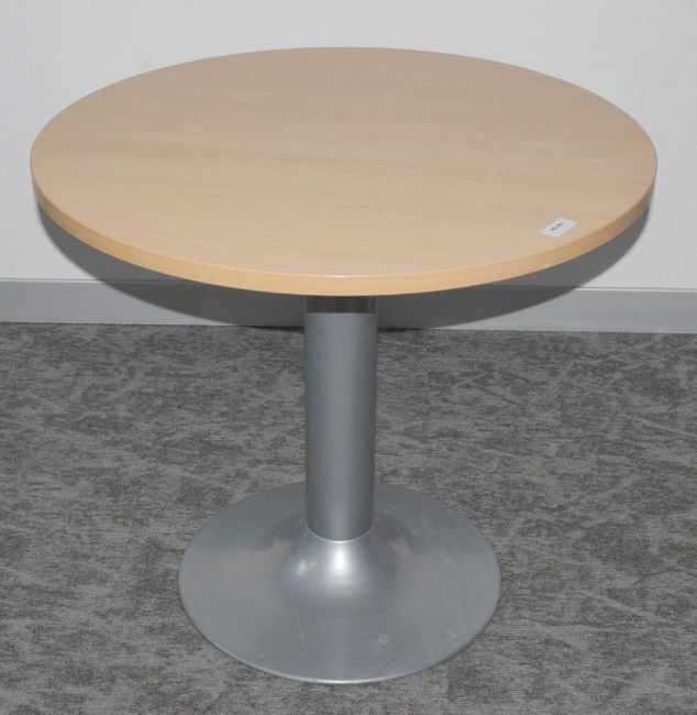1 x Small Round Office Table Featuring a Beech Top Supported by a Silver Pedestal Base - Dimensions: H72 x W80 cms - Ref: WH2 HC184 - CL1076 - Location: Altrincham WA14