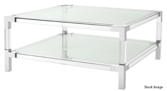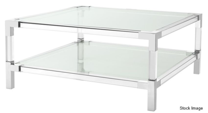 1 x EICHHOLTZ 'Royalton' Luxury Bauhaus-Inspired 100cm Glass Topped Square Coffee Table in Clear Acrylic with Nickel Accents - Original Price £2,995 *See Condition* Ref: /6697212 - CL1053 - Location: Altrincham WA14