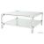 Item Description: The Royalton Coffee Table features two clear glass table surfaces that run parallel to clear acrylic rods. Corners and legs of brushed brass finish complete the modern aesthetic