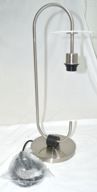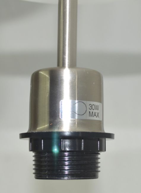 - Tall cylinder fabric shade seemingly held within a looped tubular frame.