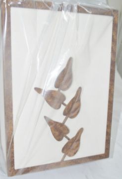 Item Description: An elegant half wall lantern with a hand finished Rust Patina metal frame encasing Natural fabric panels. The front features a climbing metal leaves design.