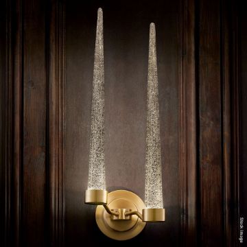 1 x CHELSOM 'Icicle' Luxury 2-Sconce LED Wall Light in an English Brass Finish with Silver Leaf Flecked Glass Diffusers, H70cm - Ref: IC/24/W2/P25-2 - CL1067 - Location: Altrincham WA14