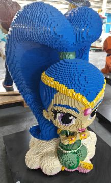 1 x Large Scale 4.6ft Plastic Brick Sculpture of a Cartoon Style Middle Eastern Genie with Blue Hair - Constructed with Genuine Lego Bricks and Fixed on a Raised Stainless Steel Platform - Ref: LG101 - CL1077 - Location: Cheshire