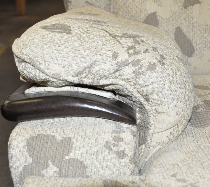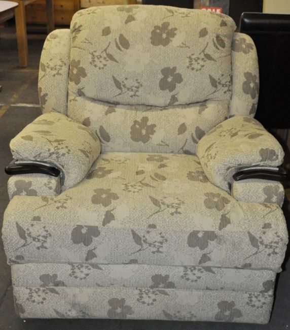 1 x Beige Fabric Pattern Armchair with Wood Trim Arms – £1,599 - Designed for Comfort – Ex Display – Dimensions : 95x75x105cm – CH183 - CL050 – Location : Chadderton OL9
