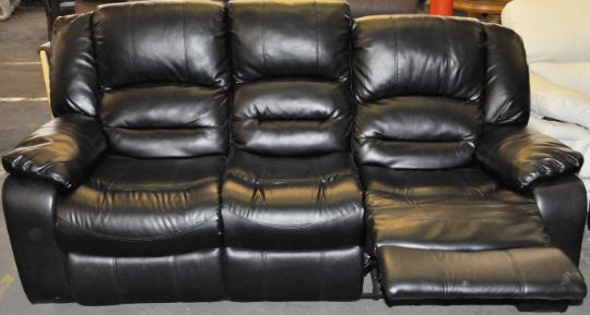 1 x Stylish Black Real Leather 3 Seater Sofa with Reclining Seat – RRP £1,299.00 - Banded Leather Providing Incredible Comfort – Ex Display In Great Condition – Dimensions : 200x70x100cm – CH182 - CL046 – Location : Chadderton OL9