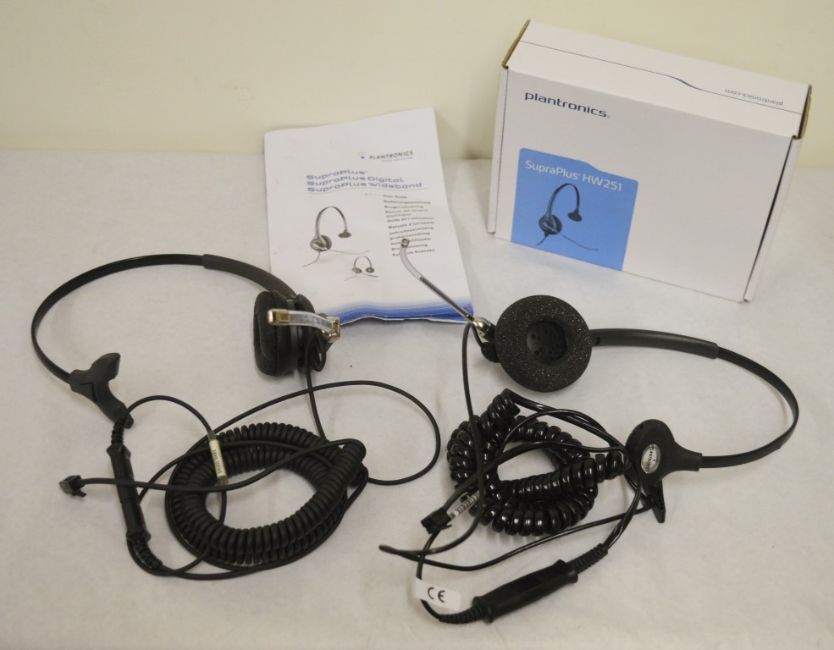 3 x Plantronics Supraplus Wideband Monaural Office Headsets - HW251 - Removed From Working Office Environment - Excellent Condition - PCS15 - CL060 - Location: Altrincham WA14 - Approx RRP £120!