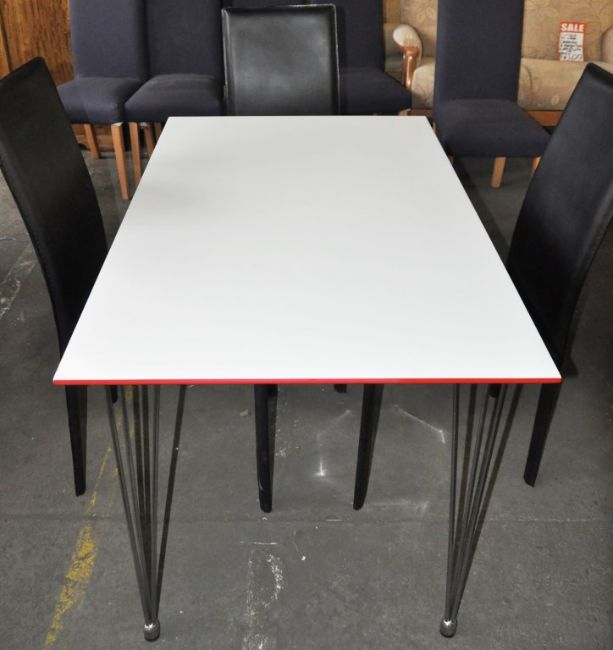 1 x Modern White Kitchen Table Set – Designed with Stylish Red Edging & Metal Legs – Comes with 4 Black Chairs – Ex Display – Dimensions : 120x76cm - Ref : CH170 - CL050 – Location : Chadderton OL9