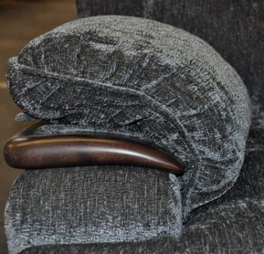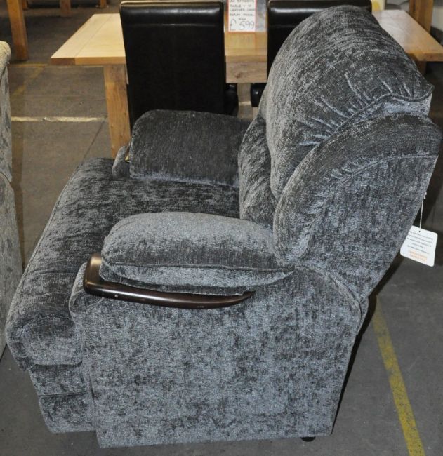 1 x Fabric Pattern Armchair with Wood Trim Arms – RRP £1,199 - Designed for Comfort – Colour : Grey-Blue – Ex Display – Dimensions : 95x75x105cm – CH184 - CL050 – Location : Chadderton OL9