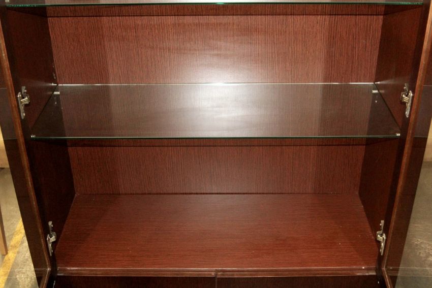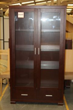1 x Dark Oak Illuminated Display Cabinet – 3ft – 2 Drawer / 2 Door With Glass Shelves – Ref CH015 - Ex Display Stock In Very Good Condition – Current Showroom Closure - CL036 - Location: Bury BL9
