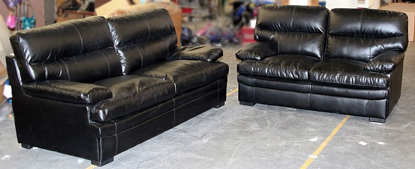 Black 3 + 2 Leather Seater Sofa Set – Both Upholstered In Black Bonded Leather – Ref CH061 – RRP £2,200 - Ex Display Stock In Good Condition – Current Showroom Closure - CL036 - Location: Bury BL9