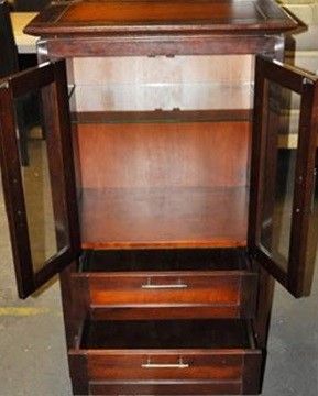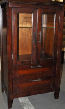 1 x Henley Traditional Red Mahogany Drinks Cabinet by Bentley Designs – Comes with Drawers & Glass Shelving – Ex Display – Perfect For Studies,Sitting Rooms, Drawing Rooms & Dining Rooms - Ref: CH163 – CL050 - Location : Chadderton OL9