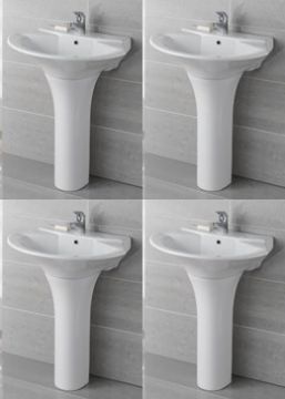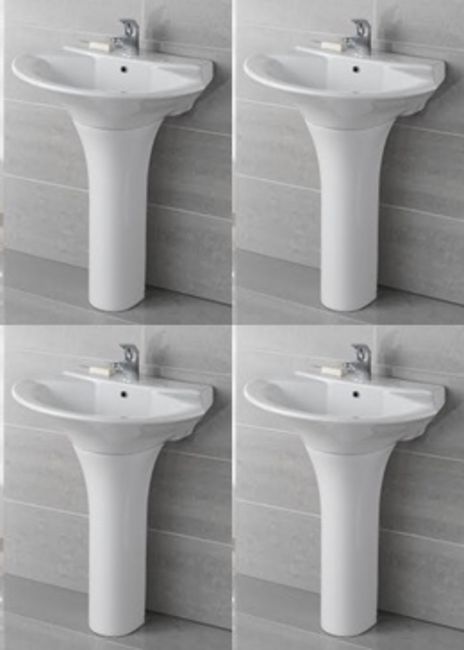 4 x Vogue Bathrooms CLARA Single Tap Hole SINK BASINS With Pedestals - 710mm Width - Product Code 1BCCLA2/1BCCLA3 - Brand New Boxed Stock - Pallet 88/83 - CL034 - High Quality White Ceramic Bathroom Stock - Location: Bolton BL1