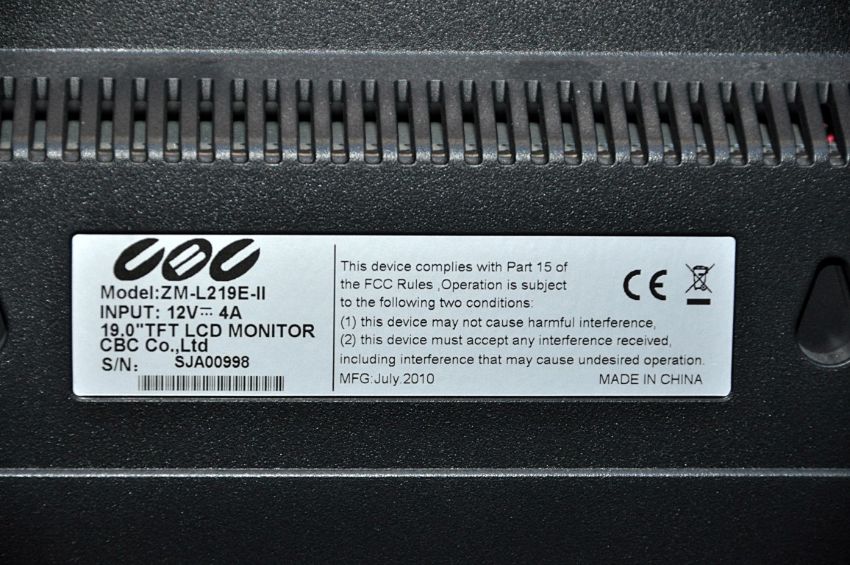 1 x CBC 19” TFT LCD Video Surveillance Monitor – Model: ZM-L219E-II – LON9 – Pre-owned In Working Order With PSU – No Leads Supplied - CL105 – Location: Altrincham WA1 General Product Specs Eco Type, LCD, 19'' (48cm) TFT, 1280x1024 pixel, 500TVL, PAL/NT