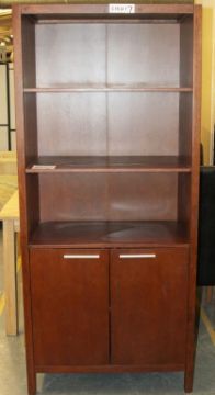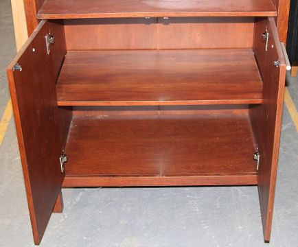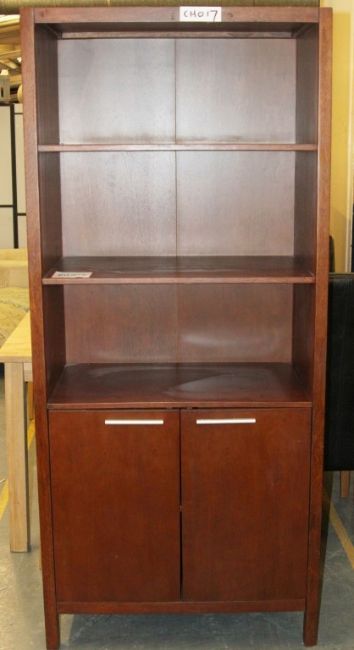 1 x Mahogany 3ft Tall 2 Door / 2 Shelf Unit With Glass Shelves – Ref CH017 – Ex Display Stock In Good Condition – Current Showroom Closure - CL036 - Location: Bury BL9