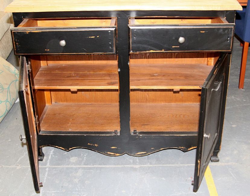 1 x 4ft Shabby Chic Sideboard – 2 Drawer / 2 Door – 4ft Wide – Ref CH010 – Fantastic Vintage-style Finish - Ex Display Stock In Very Good Condition – Current Showroom Closure - CL036 - Location: Bury BL9 Dimensions: 44inch wide 17inch deep 36inch high