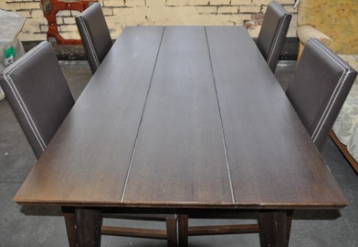 1 x Dark Oak Table with 4 Leather Chairs Set – Designed by Bentley – Ex Display – Dimensions : 180x90x75cm - Ref : CH137 - CL050 – Location : Chadderton OL9