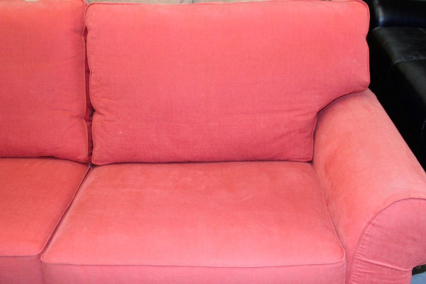 1 x 3-Seater Fabric Covered Sofa – Colour: Burnt Orange / Red - Ref CH059 – Ex Display Stock In Good Condition – Current Showroom Closure - CL036 - Location: Bury BL9