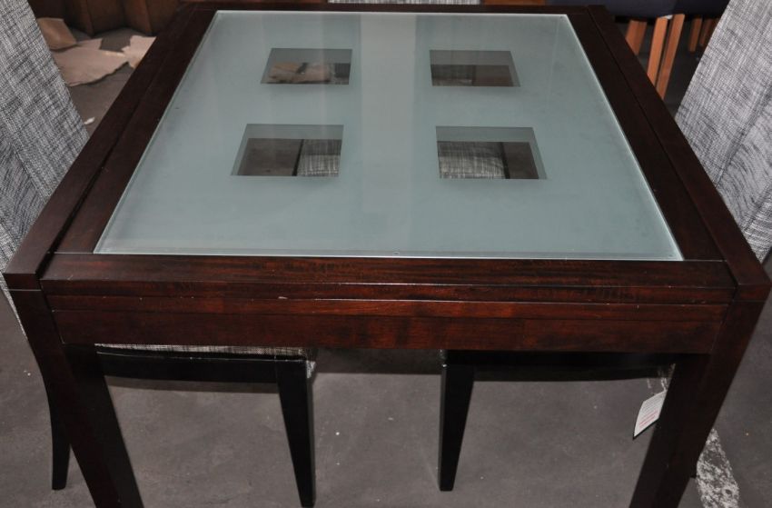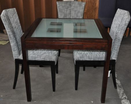 1 x Dark Oak Framed Extendable Glass Table with 4 Leather Chairs Set – Designed by Bentley – Ex Display – Dimensions : 180x90x75cm Extended & 90x90cm Retracted - Ref : CH169 - CL050 – Location : Chadderton OL9