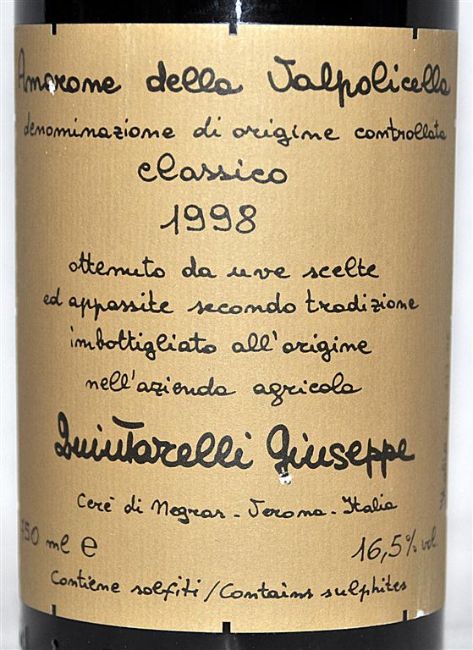 1 x Giuseppe Quintarelli Amarone della Valpolicella Classico DOCG, Veneto, Italy - Year 1998 - Bottle Size 75cl - Volume 16.5% - Ref W391 - CL101 - Location: Altrincham WA14 - Approx RRP £180!