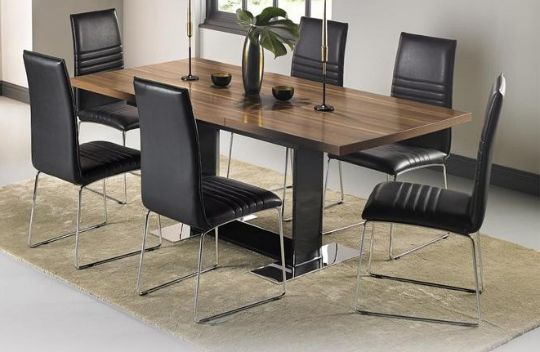 1 x Mark Webster San Diego Dining Table With Six Black Faux Leather Chairs - CL018 - Brand New Boxed Stock - Location: Altrincham WA14