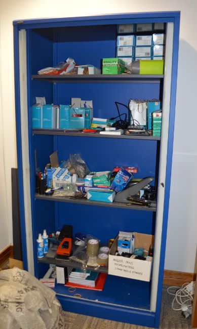 1 x Silverline Office Storage Cabinet With Tambour Sliding Doors - BLUE - Includes Key - H200 x W100 x D51 cm - Perfect For Storing Office Documents and Stationary - Ref SB186 - CL106 - Location: Manchester M1 - Contents Not Included!