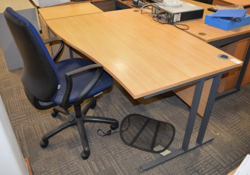 1 x Office Furniture Set - Includes Left Hand Beech Desk, Swivel Office Chair and Drawer Pedestal - Desk Size: H72 x W140 x D100 cm - Ref SB104 - CL106 - Location: Manchester M1