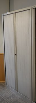 1 x Bisley Upright Office Storage Cabinet With Tambour Sliding Doors - Does Not Include Key - H197 x W100 x D47 cm - High Quality Grey Steel Cabinet - Perfect For Storing Office Documents and Stationary - Ref ADMINOFFICE - CL106 - Location: Manchester M1 - RRP £900! - Contents Not Included!