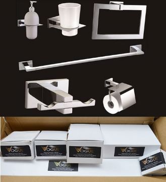 1 x Vogue Series 6 Six Piece Bathroom Accessory Set - Includes WC Roll Holder, Soap Dispenser, Tumbler, Towel Ring, Robe Hook & Towel Rail - High Quality - Substantial Accessories - Brand New Boxed Stock - CL044 - Product Code: 1VAS60 - Location: Bolton BL1 - RRP £199!
