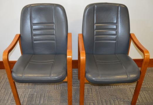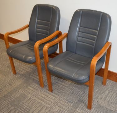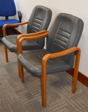 4 x Matching Grey Leather Boardroom Reception Chairs With Wooden Frames - Four Comfortable Matching Chairs - Ideal For Boardrooms, Waiting Rooms, Receptions etc - H93 x W61 x D67 cms - Ref SB198 - CL106 - Location: Manchester M1