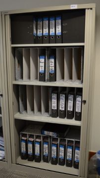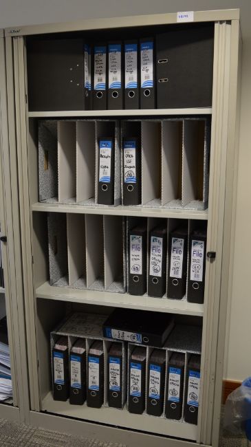 1 x Bisley Upright Office Storage Cabinet With Tambour Sliding Doors - Does Not Include Key - H197 x W100 x D47 cm - High Quality Grey Steel Cabinet - Perfect For Storing Office Documents and Stationary - Ref ADMINOFFICE - CL106 - Location: Manchester M1 - RRP £900! - Contents Not Included!