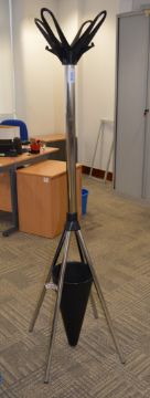 1 x Upright Coat Stand With Umburella Bucket - Black Hardwearing Plastic With Chrome Frame - Approx Height 177cm - Ref SB138 - CL106 - Location: Manchester M1