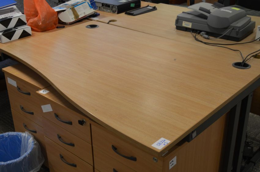 1 x Right Hand Office Desk - Right Hand - Quality Oak Finish Desk With Grey Coated Steel Frame - H72 x W140 x D100 cm - Ideal For Home Office or Business Place - SB098RIGHT - CL106 - Location: Manchester M1