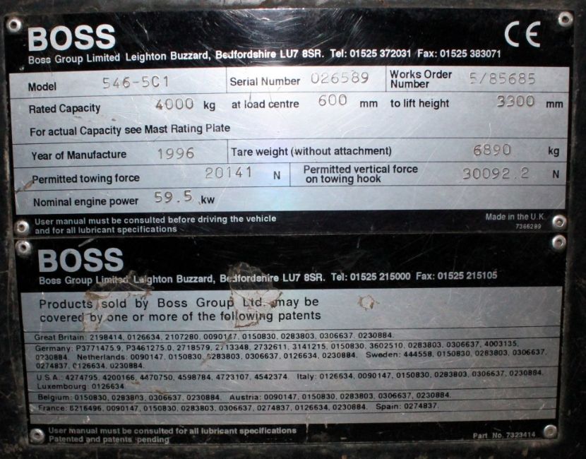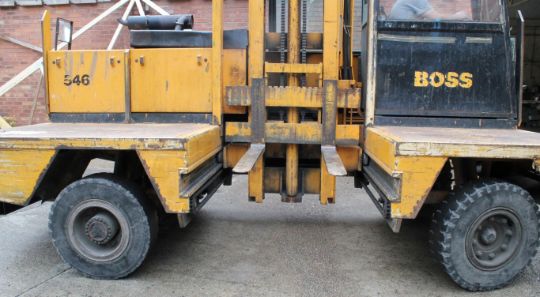 1 x Boss Diesel 4 Ton Sideloader Forklift Truck - Model 5465C1 - Year 1996 - Max Lift Weight 4000kg - Max Lift Height 3300mm - Great Machine, Never Failed - Solid Fill Tyres - CL151 - Location: Manchester - Please note this item needs to be the last lot collected from site. Please expect to wait approximately 10 days until the item is ready for collection.