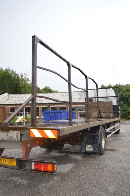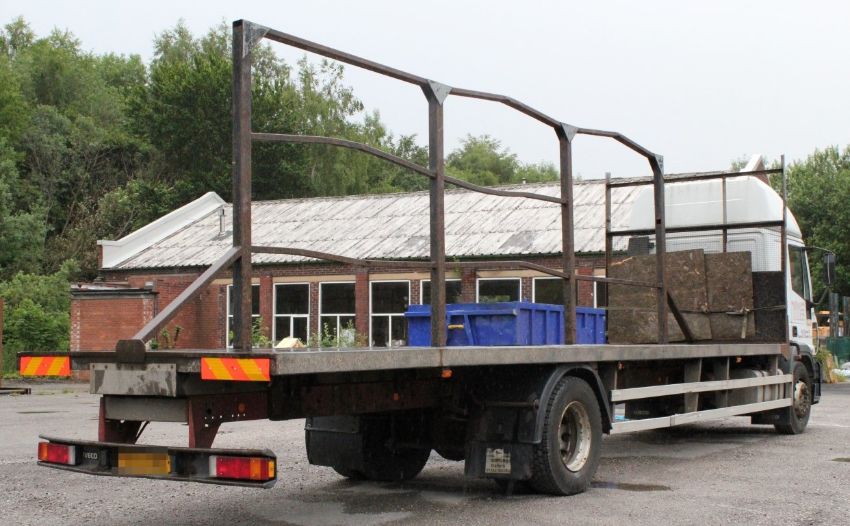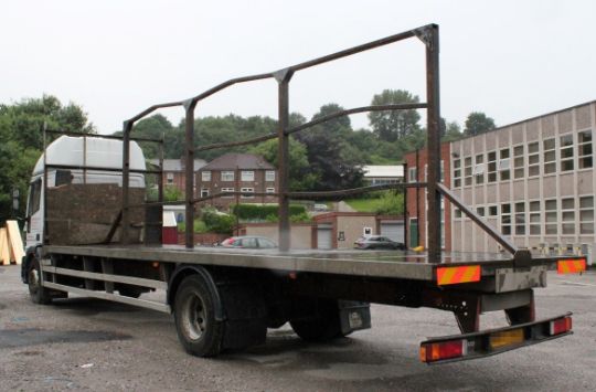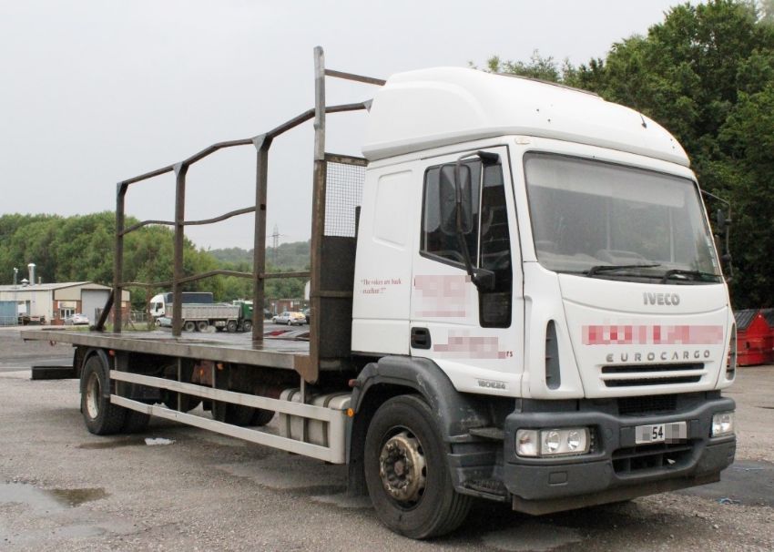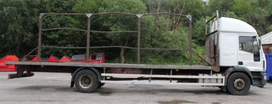 1 x Iveco Eurocargo 180E24 Custom Flat Bed Truck - Year 2004 - MOT Until Feb 2016 - New Rear Brake Pads Fitted July 2015 - Well Maintained Truck - Customised Bed to Cargo Roof Trusses - CL151 - 718718km - Location: Manchester - Please note that collection may be delayed as this item needs to be one of the last items that is collected from the site. Information can be provided after the auction.