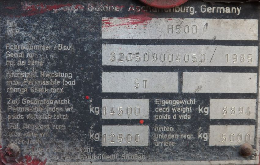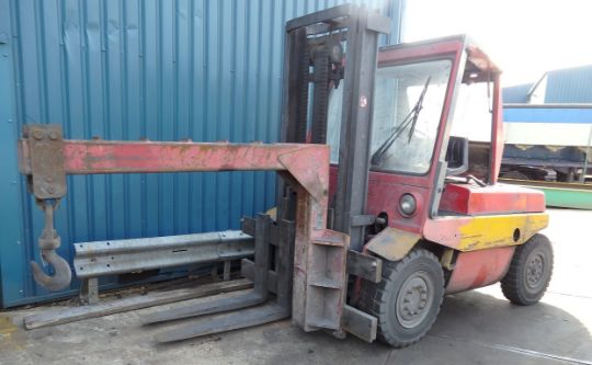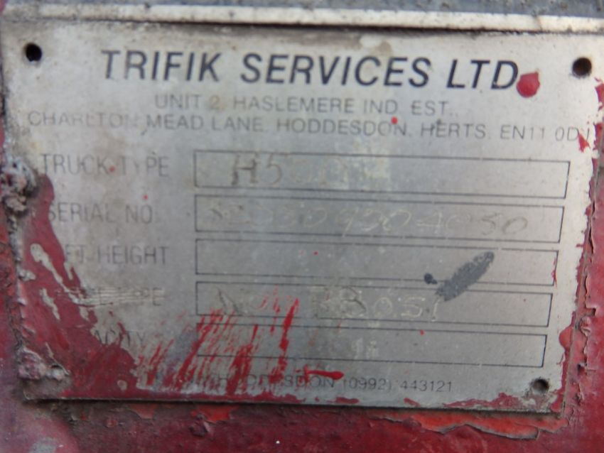 1 x Trifik 5 Tonne Lift Forklift Truck with SWL 5000KG Crane and Hoist at 620mm - Model H50D 1985 - Forklift in Working Condition, However Alternator Requires Attention - 21071hrs - CL057 - Location: Welwyn Garden City, Hertfordshire, AL7