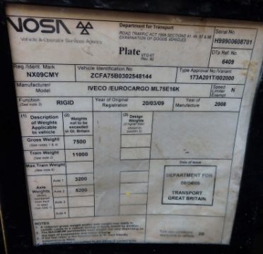1 x Iveco Eurocargo 75E16 Britt Tip Body Truck - 2009 009 Reg - Edbro Tipper - With Tow Bar - GVW Day Cab - 132012KM - Vosa Certificate - Two Keys - CL057 - Location: Welwyn Garden City, Hertfordshire, AL7