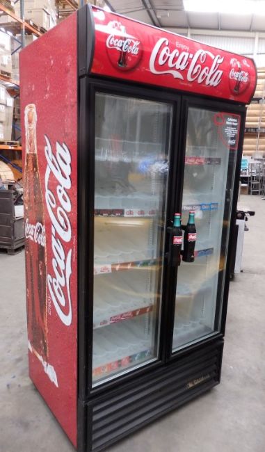 1 x Oversized 2-Door "Coca-Cola" Merchandiser Refrigerator - Model: TRUE GDM 35 - 991Ltr - Glass Swing Doors - Made In The USA - Features Bottle Shaped Handles - Ref WPM086 - CL057 - Location: Welwyn, Hertfordshire, AL7 - Original RRP £2,000
