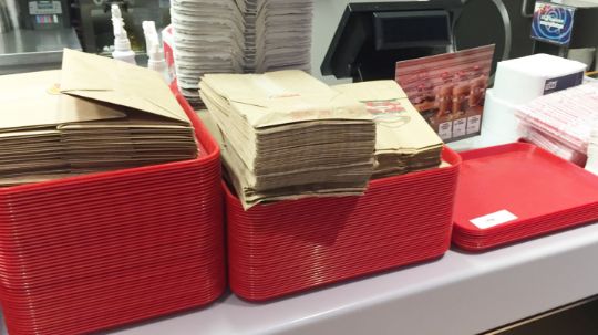 1 x Assorted Lot Including 86 Red Plastic Food Trays, Take Away Cup Holders, Brown Food Bags and Burger King Straws - Please See The Pictures Provided - Ref 199 - CL200 - Location: Somerset BA16